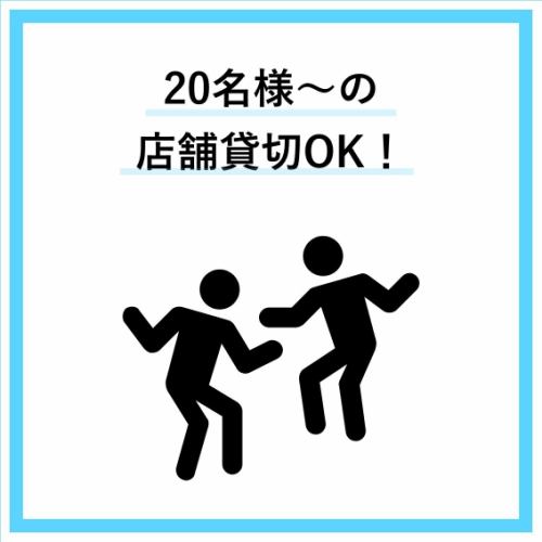 【貸切可能】20名様以上のご利用で、店舗の貸切が可能です。広々とした空間を貸し切って、会社の宴会や打ち上げ、お誕生日会など、大人数でのパーティーを心ゆくまでお楽しみいただけます◎一体感のある特別な時間をお過ごしください!